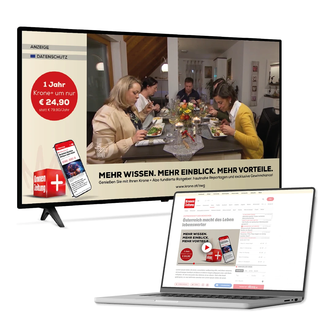 Ihr Addressable TV-Banner wird kurz nach dem Senderwechsel eingeblendet und bleibt für volle zehn Sekunden klar und dominant sichtbar. Das „L-förmige“ Format erscheint genau dann, wenn die Zuschauer selbst den Kanal wechseln, wodurch eine hohe Aufmerksamkeit garantiert ist.