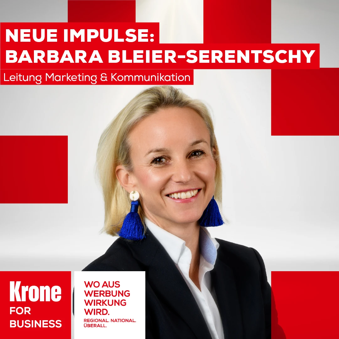 Barbara Bleier-Serentschy übernimmt mit November die Leitung Krone Marketing & Kommunikation. Wir wünschen viel Erfolg!